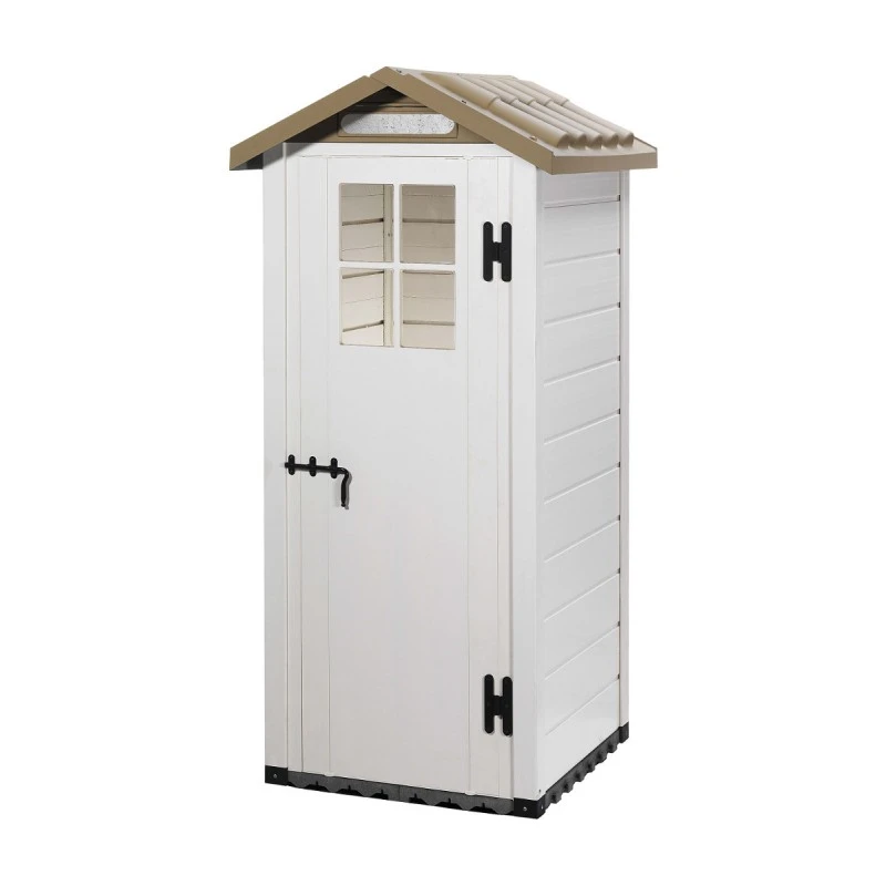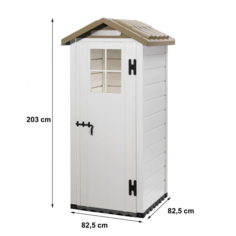 L’abri de jardin Evo Tuscany 80 est un charmant petit abri mural, il apportera un beau cachet à votre aménagement extérieur, avec son toit à double pente imitation tuile en ABS traité anti-UV, et sa porte battante verrouillable de 173x59cm munie d’une fenêtre en plexiglas.
