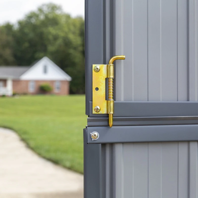 La particularité de cet abri est sa porte de type écurie, dont les montants inférieur et supérieur peuvent être ouverts indépendamment. Vous pourrez ainsi empêchez l’accès de l’abri à vos enfants ou à vos animaux domestiques, tout en maintenant une circulation d’air afin de limiter l’accumulation de chaleur pendant la saison estivale. La porte et les éléments de renfort angulaires sont peints couleur crème, pour un contraste élégant et une intégration harmonieuse dans votre environnement extérieur. La porte peut être verrouillée à l’aide d’un cadenas non inclus.