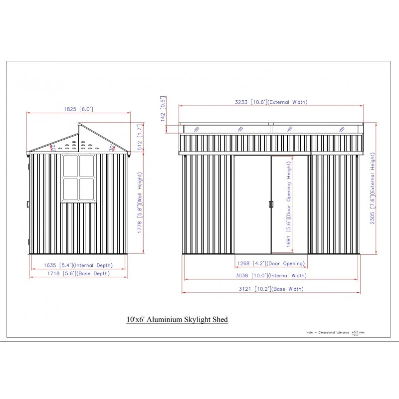 L’abri de jardin en alu 5,33m² Duramax est doté d’un large puits de lumière et d’une fenêtre sur le côté ce qui apporte une bonne luminosité à l’intérieur de l’abri. Le puits de lumière et la hauteur sous faîtage qui dépasse 200cm vous permettent de profiter pleinement de l’espace de stockage offert.