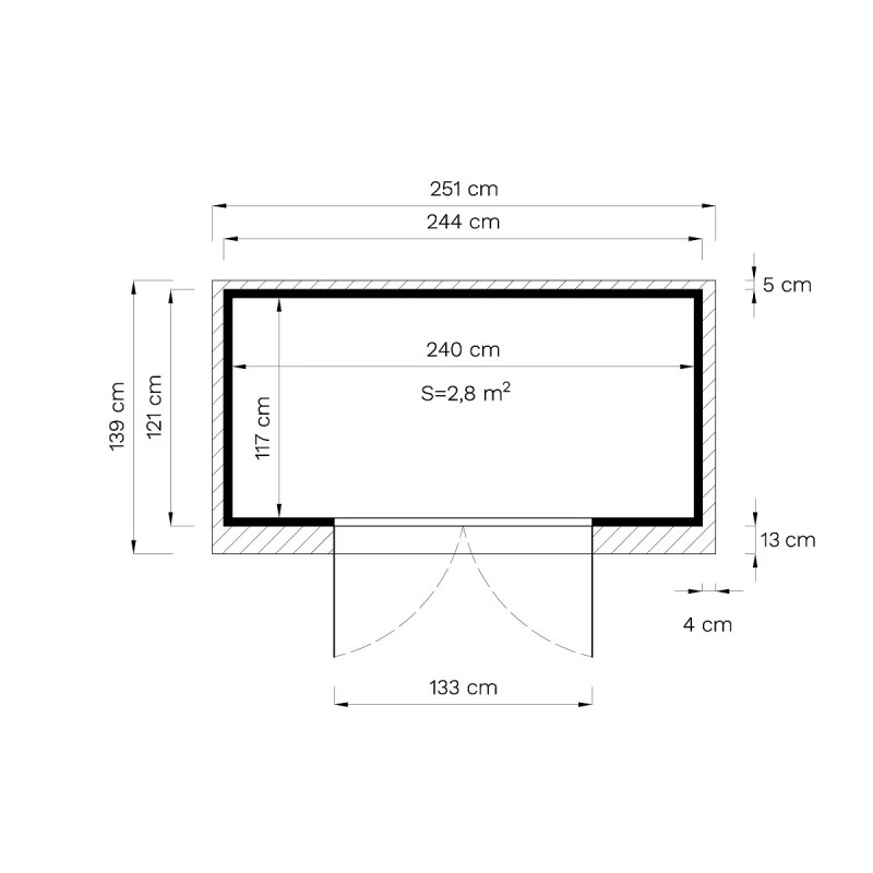 Dimensions hors-tout (LxPxH) : 251x139x211cm