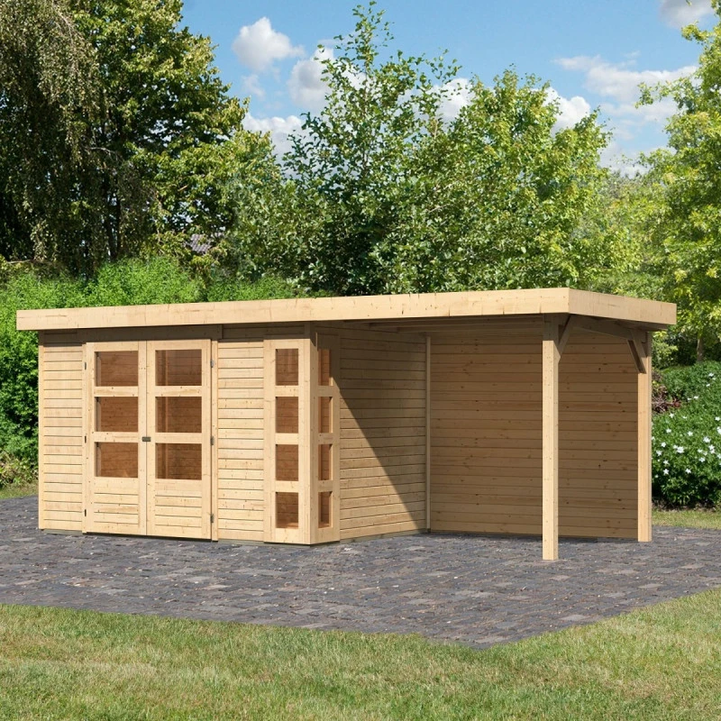 L’avis du spécialiste sur l’abri de jardin en bois massif 6,55m² Kerko 4 avec appentis 240cm et paroi arrière – Karibu :