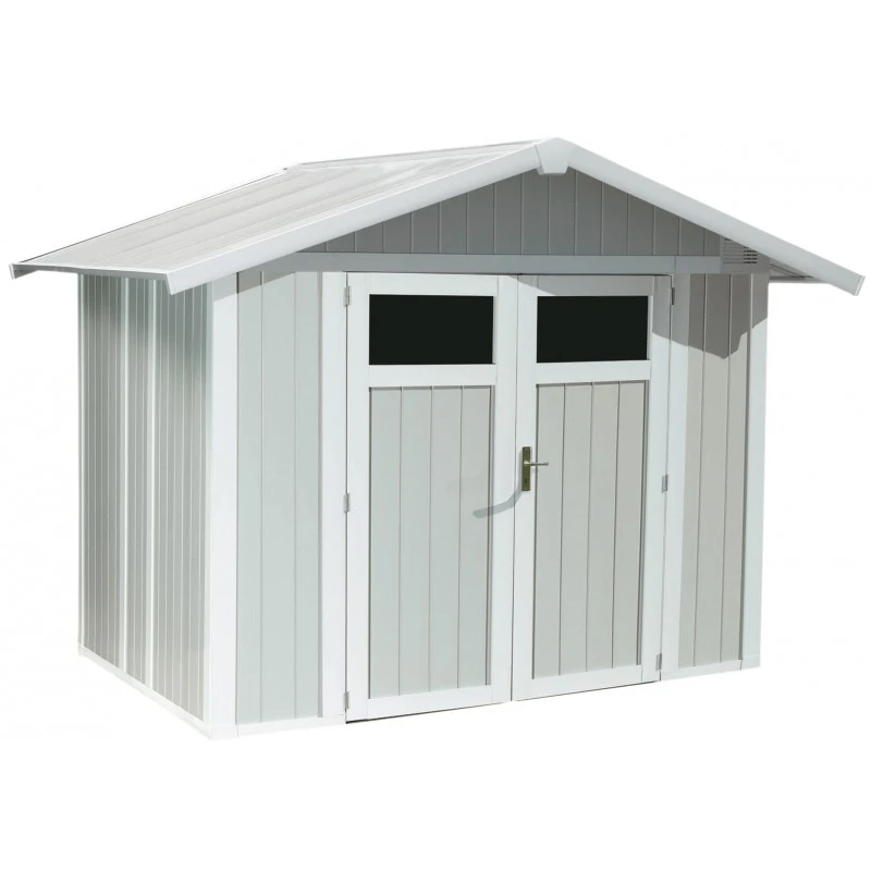 Abri De Jardin En PVC 4,9m² UTILITY Blanc Et Gris Bleu Grosfillex + Kit Ancrage Offert