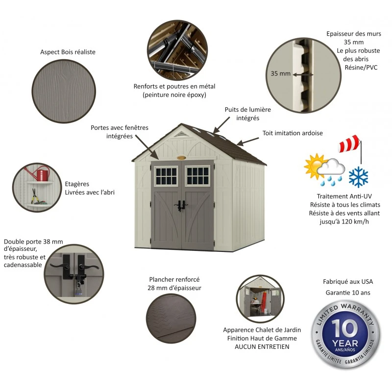 Abri De Jardin Polyéthylène 35mm 5,53m² Woodgrain + Plancher SUNCAST
