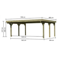 Carport Double En Bois Autoclave 28,3m², Toit En PVC Gris Et Deux Poteaux En Arc – KARIBU