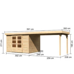 Abri De Jardin En Bois Massif 7,50m² Kastorf 6 Avec Appentis 320cm Et Paroi Arrière – Karibu
