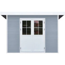 Abri De Jardin En Bois Composite 28mm Gris Clair 4,41m² PREMIUM Toit Plat – Woodlife Garden