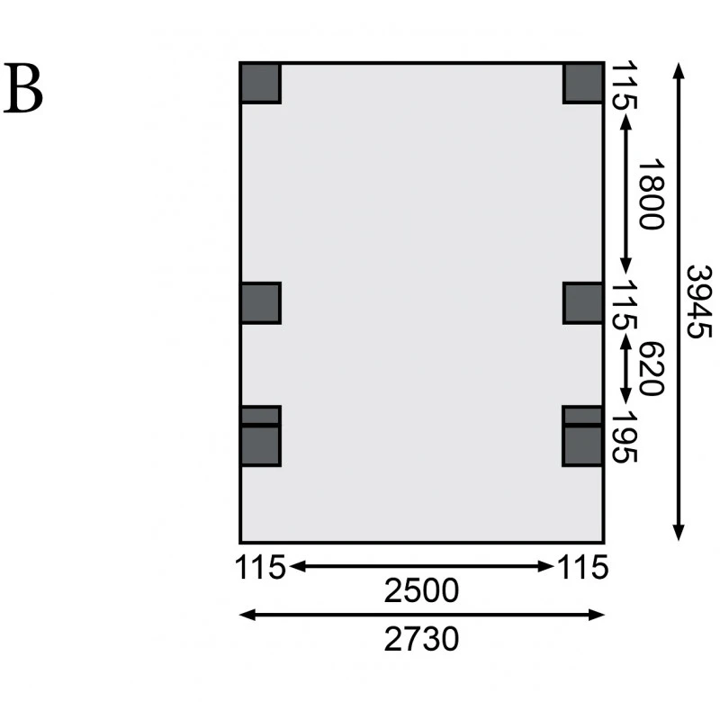 Dimensions intérieures (LxP) : 250×251,5cm