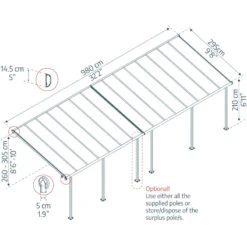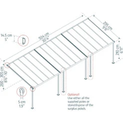 Toit De Terrasse 300x851cm En Aluminium Gris Et Polycarbonate 8mm FERIA – Canopia By Palram