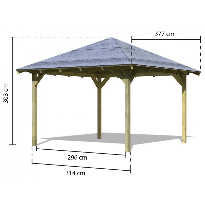 Dimensions extérieure toiture : L.377xP.377cm