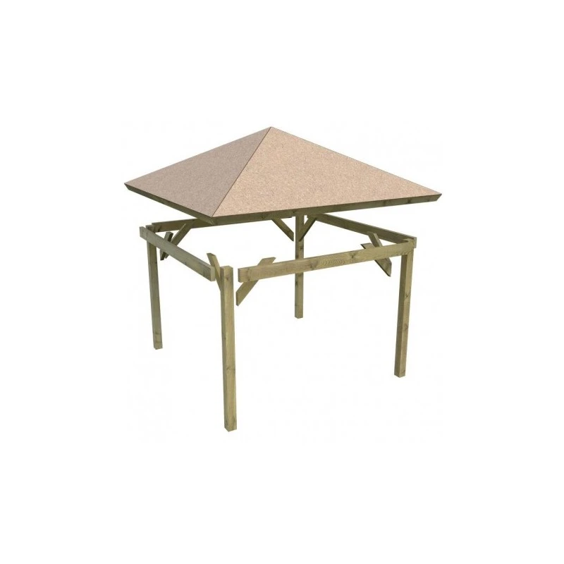 Le kiosque Granada dispose d’une couverture de toit en feutre bitumé. Cependant, afin d’améliorer la protection du kiosque par le toit, nous vous conseillons d’opter pour des shingles disponibles en option.