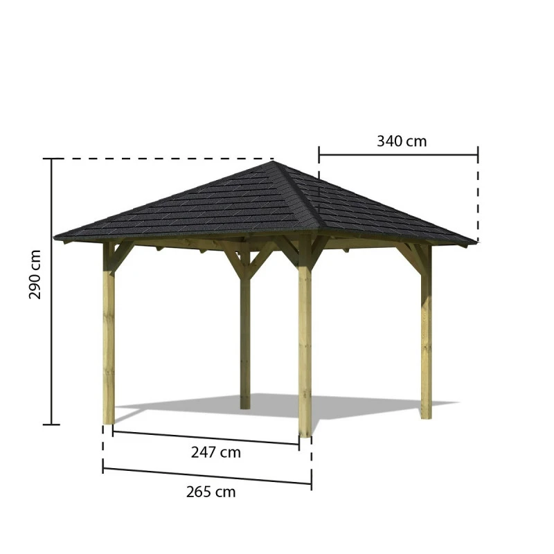 Dimensions extérieures toiture (LxP) : 340x340cm