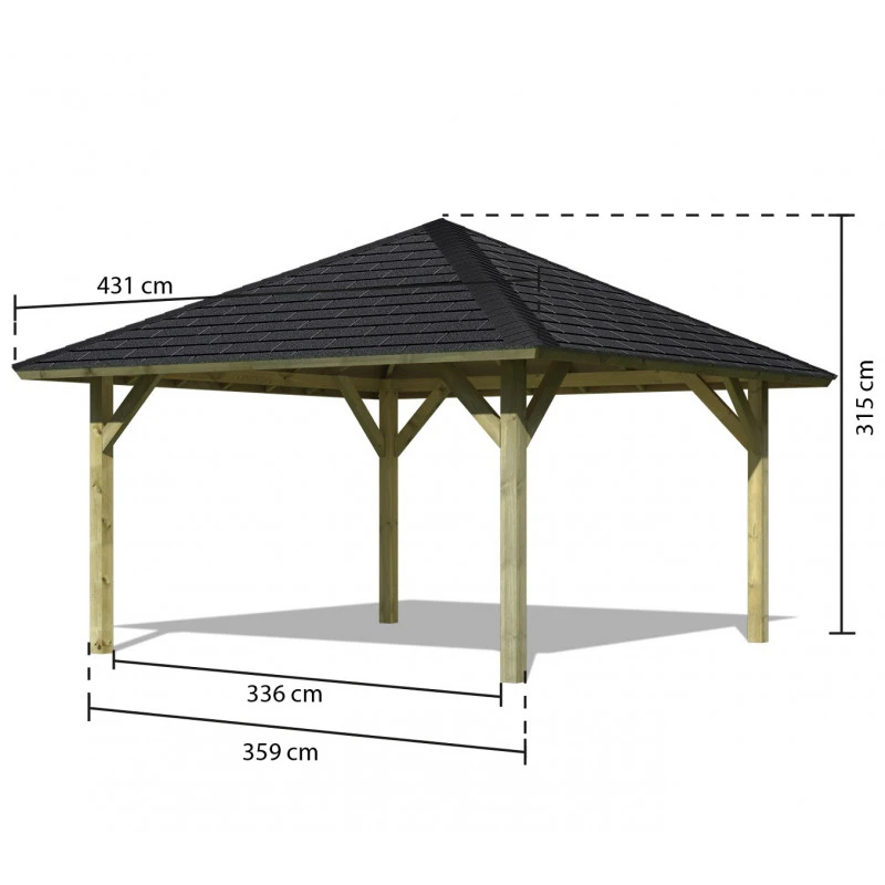 L’avis du spécialiste sur le kiosque carré en bois autoclave Holm 1 – 4,31×4,31m – avec shingles – Karibu :