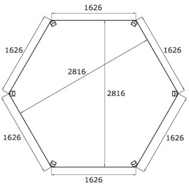 Avec ce pavillon en bois robuste d’une surface hors-sol de 8,08m² vous pourrez passer des moments agréables en extérieur et profiter pleinement de votre jardin. Composé de 6 poteaux massifs de section 9x9cm et d’une hauteur faîtière de 256cm, sa hauteur utile de 192,5cm permet de s’y déplacer confortablement.