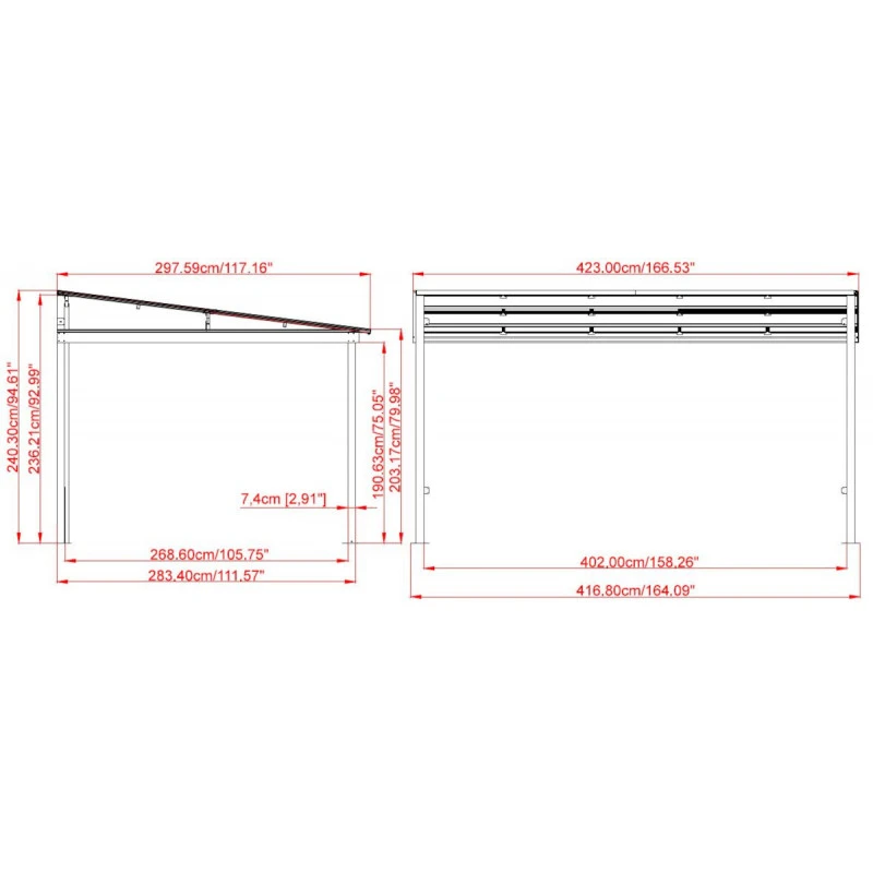 L’avis du spécialiste sur la tonnelle adossée St. Barth 424x296cm en aluminium et polycarbonate 8mm – SOJAG